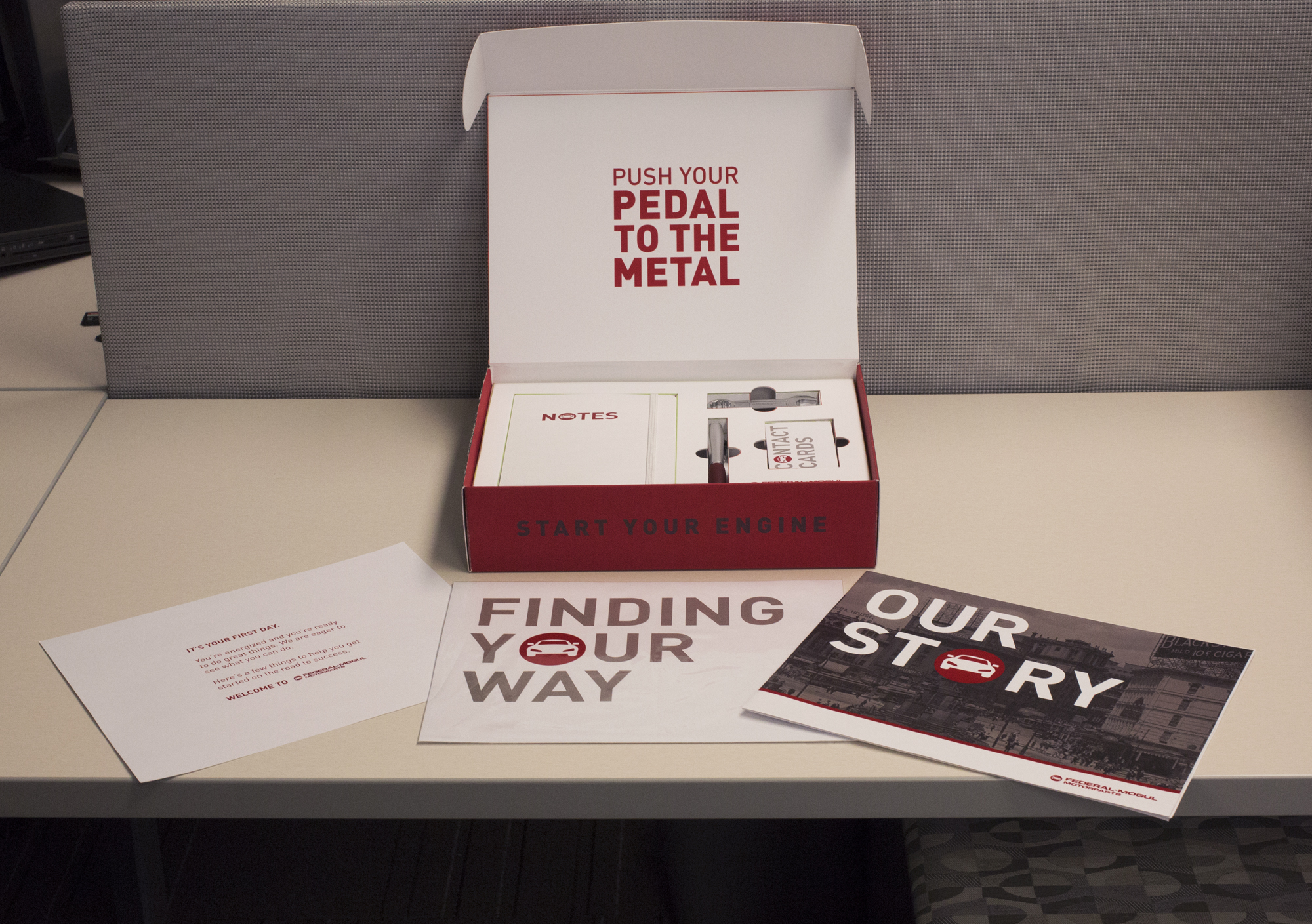 Design and creative direction for an Employee Welcome Kit to help new hires get settled upon starting with the company